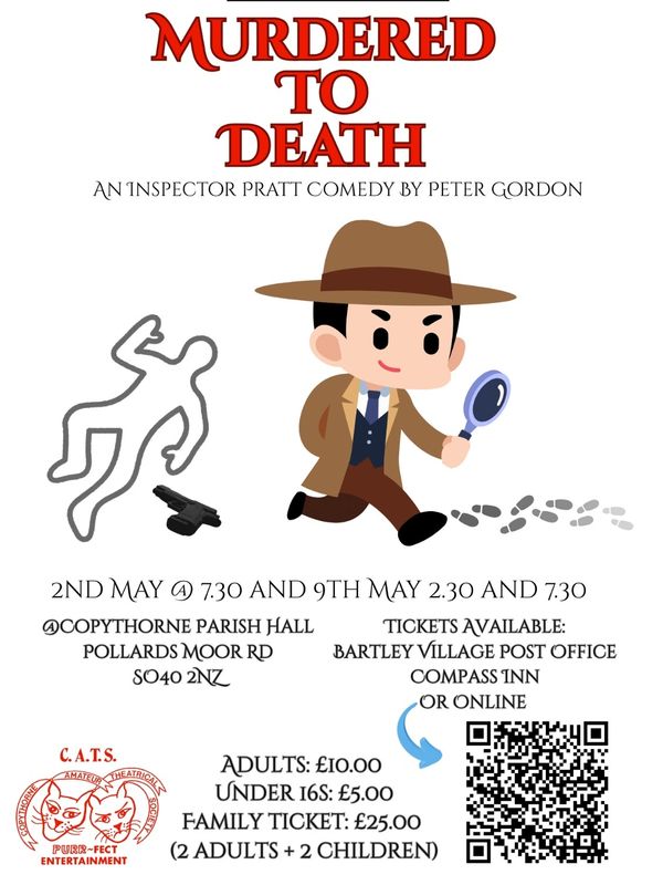 Watch out as Pratt is back in May! Tickets on sale now from Bartley Post Office, Copythorne Community Cafe, The Compass Inn or online