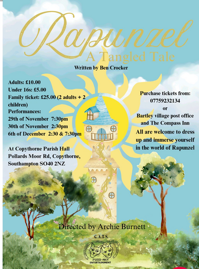 Tickets available from Bartley PO, The Compass Inn and the cafe at Copythorne Parish Hall.